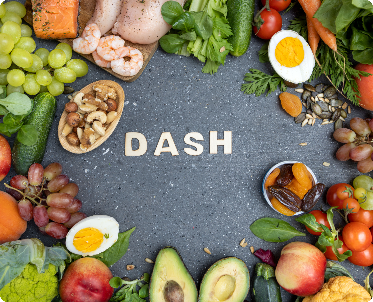 At its heart, the DASH diet encourages eating more whole, nutrient-dense foods; those naturally rich in potassium, magnesium, calcium, and fibre while cutting back on excess sodium, saturated fats, and added sugars.