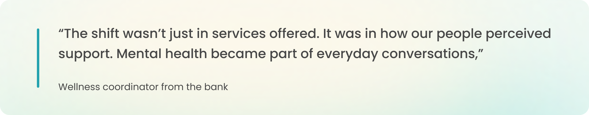 By integrating well-being into Learning & Development (L&D) and offering specialised sessions for emotionally affected employees and leadership-focused webinars, the initiative brought visibility and action to mental health support.