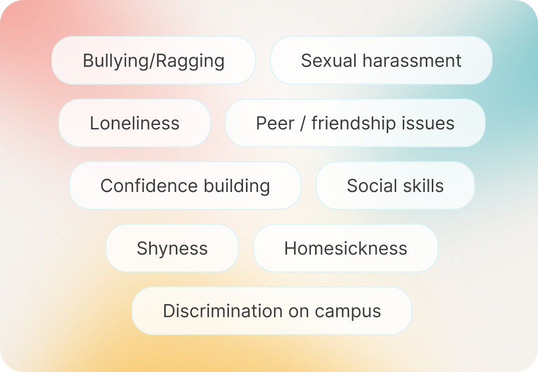 Facilitated sessions on exam stress, homesickness, peer pressure, and identity issues to build resilience.